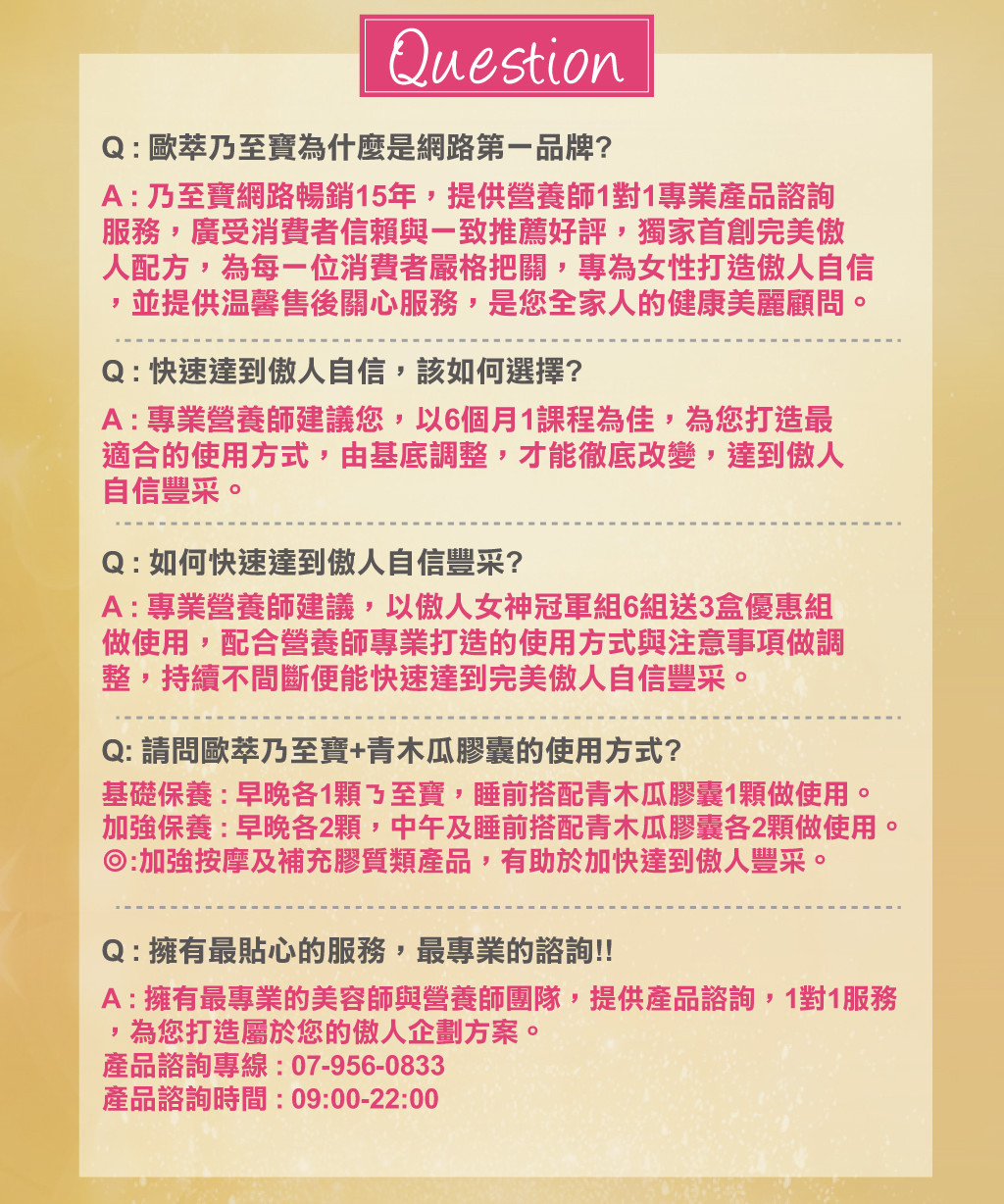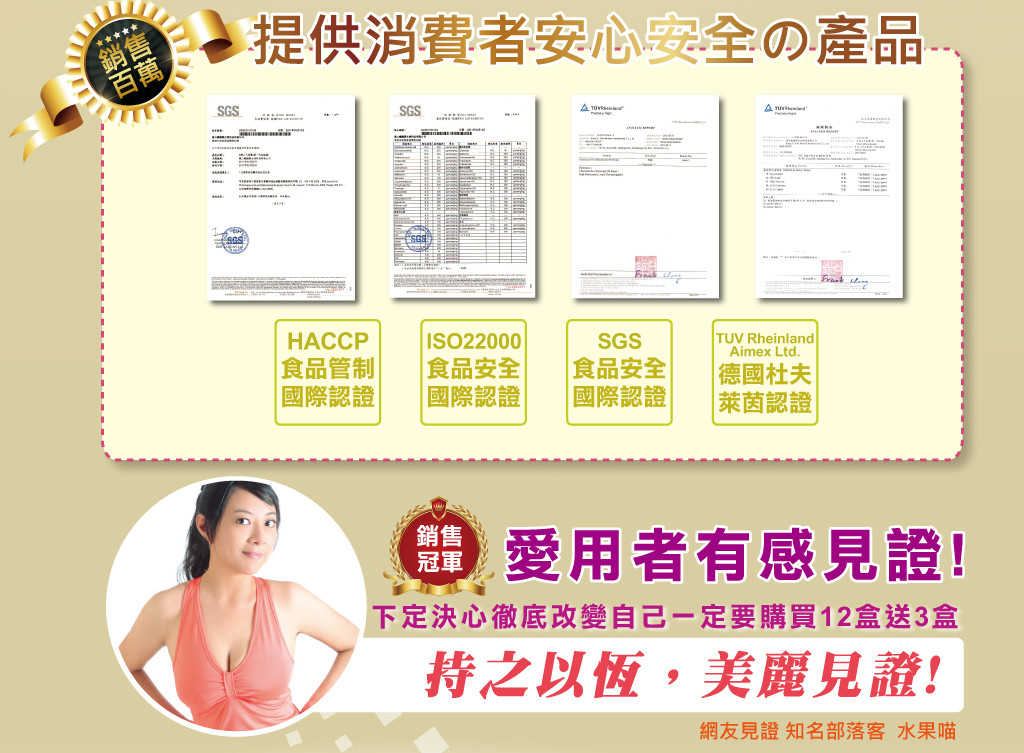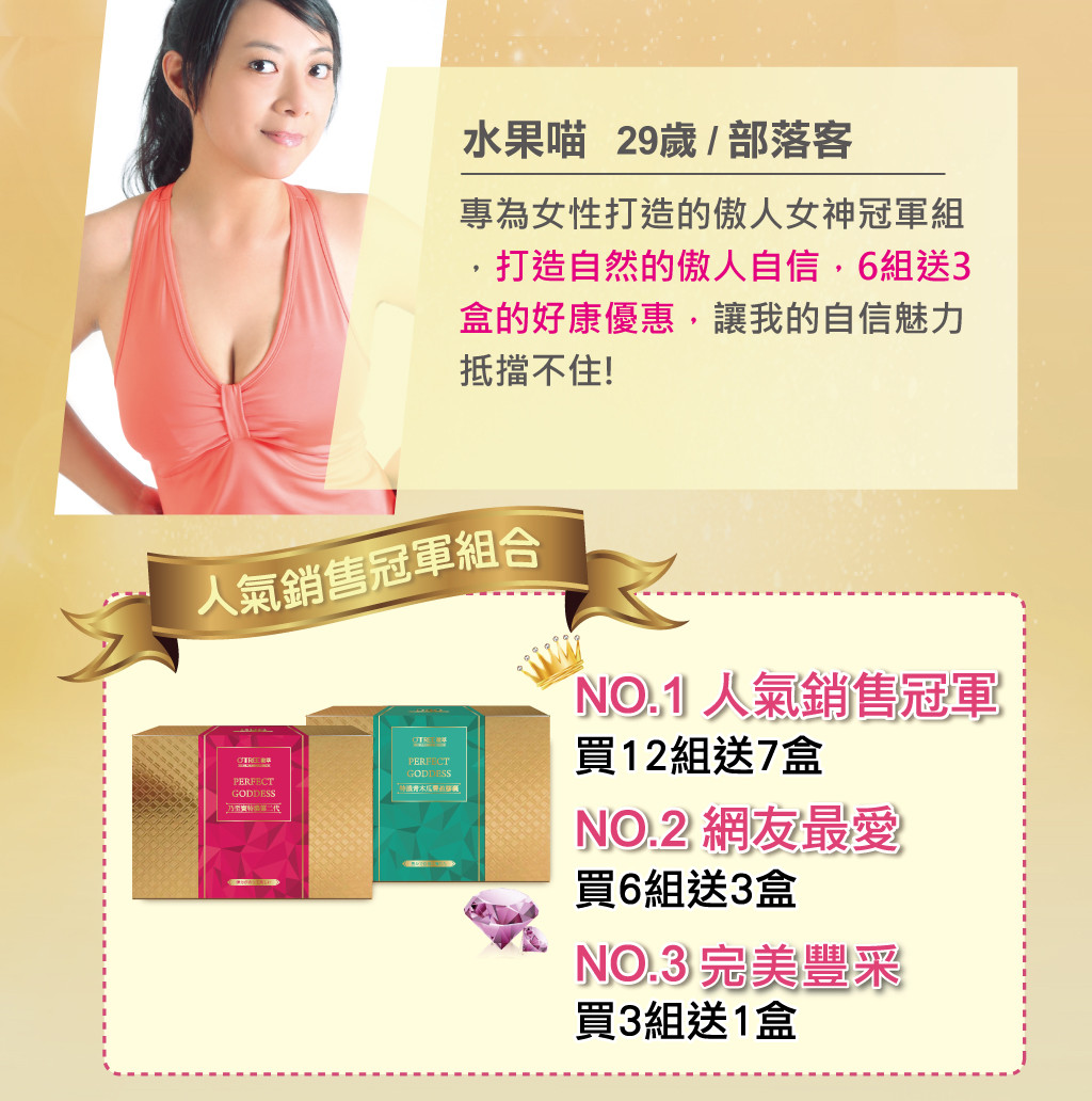 ‧使用期間建議搭配【特濃青木瓜豐盈膠囊】、【鑽透膠原蛋白美顏粉】或【活力美胸霜按摩使用】,使目標更快速達成。